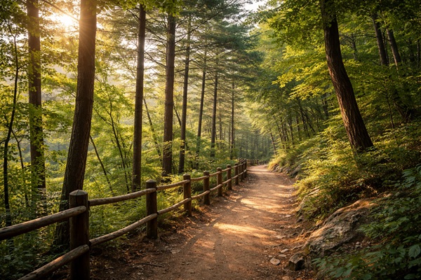 숲에서는 굳이 빠르게 걸을 필요가 없다. 오히려 천천히 걸어야 한다. 나무 사이로 들어오는 빛, 바람에 흔들리는 잎사귀 소리를 느끼는 것이 핵심이다.